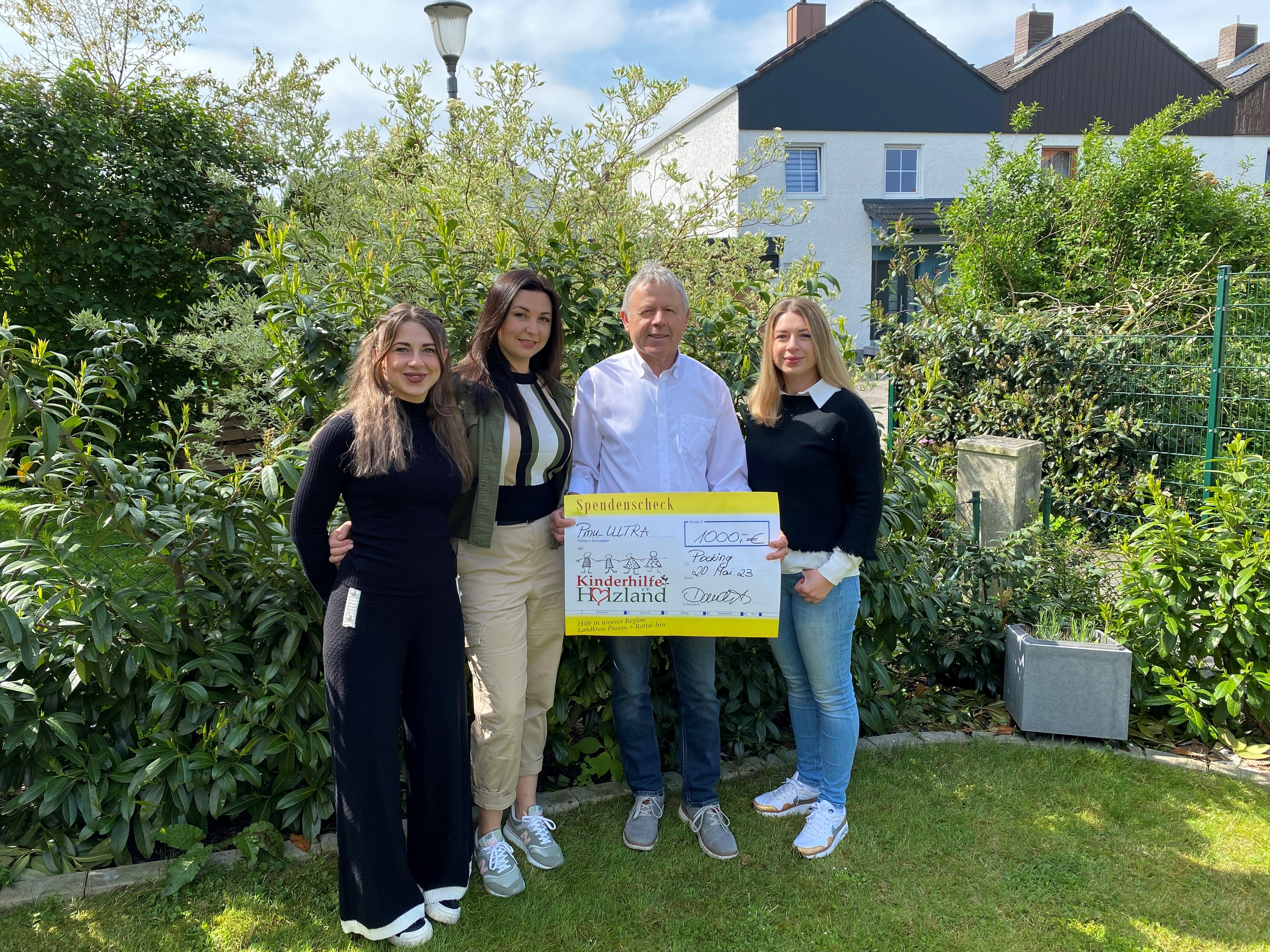 „Uns war es besonders wichtig, dass unsere Spende zu 100 Prozent dort ankommt, wo sie gebraucht wird. Das Konzept der Kinderhilfe Holzland sprach uns sofort an. Der Ansatz, Familien und Kindern in unserer Region zu helfen, hat uns überzeugt und beeindruckt.“ Daher haben sie und ihre Mitarbeiterinnen einen Tag lang umsonst gearbeitet und das Geld der Kinderhilfe Holzland gespendet. Den symbolischen Scheck über 1000 Euro überreichten auch Irina Tschikalow (Mitte) und Irina Kriegl (links) an den Vorsitzenden der Kinderhilfe, Peter Stuiber.
