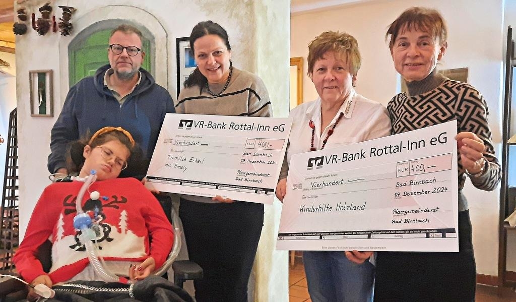 Bad Birnbach. Im Herbst hatten die Damen des Bad Birnbacher Pfarrgemeinderats zusammen mit vielen fleißigen Helferinnen Erntesträußchen gebunden und diese beim Erntedankfest gegen eine freiwillige Spende angeboten. Schon damals war klar, dass der eingenommene Betrag einem wohltätigen Zweck zukommen sollte. Man entschied dann gemeinsam, die Summe von 800 Euro zu gleichen Teilen an die Familie Eckerl aus Bad Birnbach sowie an die Kinderhilfe Holzland zu spenden.