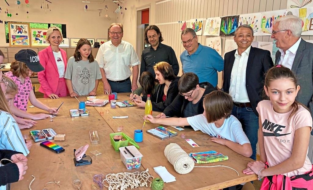 Das Fest bot auch die Möglichkeit, das Schulgebäude kennenzulernen: Neben den Klassenzimmern, Differenzierungsräumen und der Mensa gab es Einblicke in die Fachräume und Sporthallen. Aus der Schulküche zog Pfannkuchenduft durchs Gebäude, denn dort kochten Claudia Neiß und Gaby Mindl mit der Klasse 9M. Auch gab es spezielle Angebote für die Viertklässler: Lehrkräfte, Beratungslehrer, Sozialpädagogin, Mensa-Leiter und Schulleitung gaben Auskünfte. Zudem gab es zahlreiche Informationen zur Schulart Mittelschule, dem gebundenen Ganztag, den Arbeitsgemeinschaften, dem M-Zweig, der Jugendsozialarbeit und weiteren Merkmalen des Schulprofils.