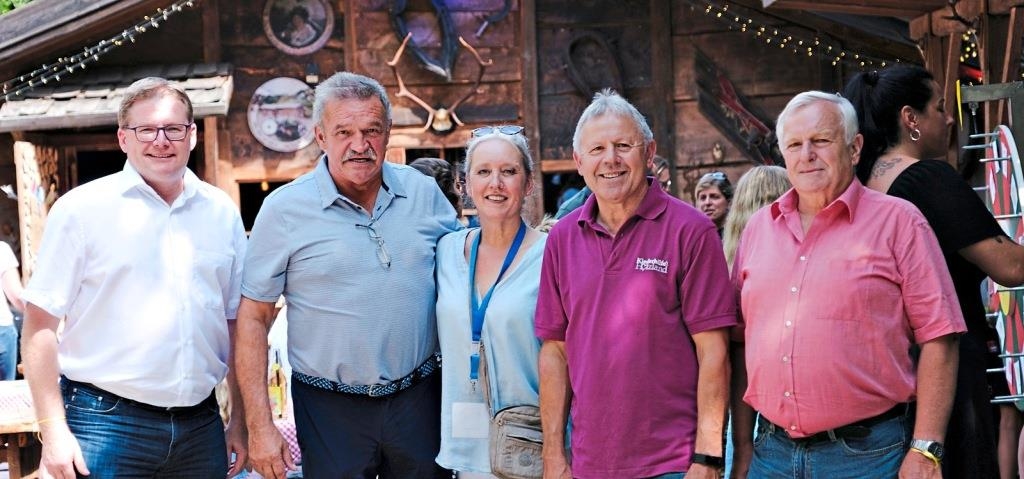 Freuten sich über einen gelungenen Sonnengut-Golftag und eine hohe Spendensumme: (von links) Petra Franzke, das Schauspieler-Ehepaar Sepp Schauer und Corinna Binzer-Schauer, Vorsitzender Peter Stuiber von der Kinderhilfe Holzland, Hoteldirektor Hans-Jörg Franzke und Golfmanager Robert Sammereier. −Foto: Gröll