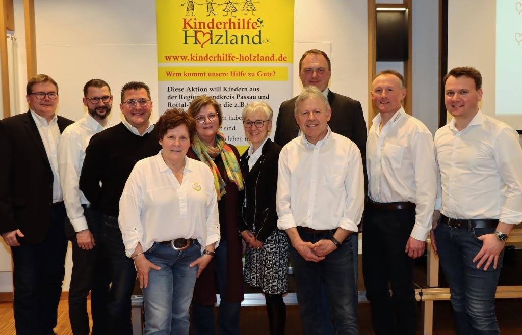 Haarbachs Bürgermeister Franz Gerleigner (v.l.) gratulierte der Vorstandschaft mit den Funktionsträgern der Kinderhilfe Holzland: Schriftführer Daniel Hutstein, Kassenprüfer Andreas Höppler, zweite Vorsitzende Rosemarie Berger, Kassierin Heidi Hauswald, Elisabeth Vordermeier (Familienbetreuung), der erste Vorsitzende Peter Stuiber, Kassenprüfer Florian Gerleigner, Helferkreis-Leiter Albert Grill und Sebastian Meier. −Fotos: Brunner