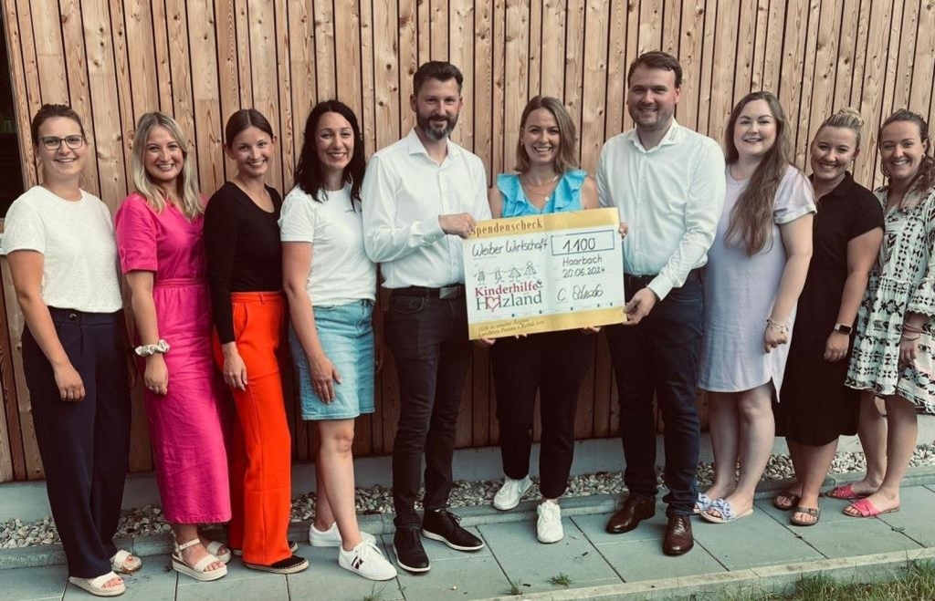 Im Lauf des Abends wurde die Summe beim Galadiner von den Teilnehmern auf 11800 Euro erhöht und der Scheck an Peter Stuiber, den Vorstand der Kinderhilfe Holzland, übergeben.