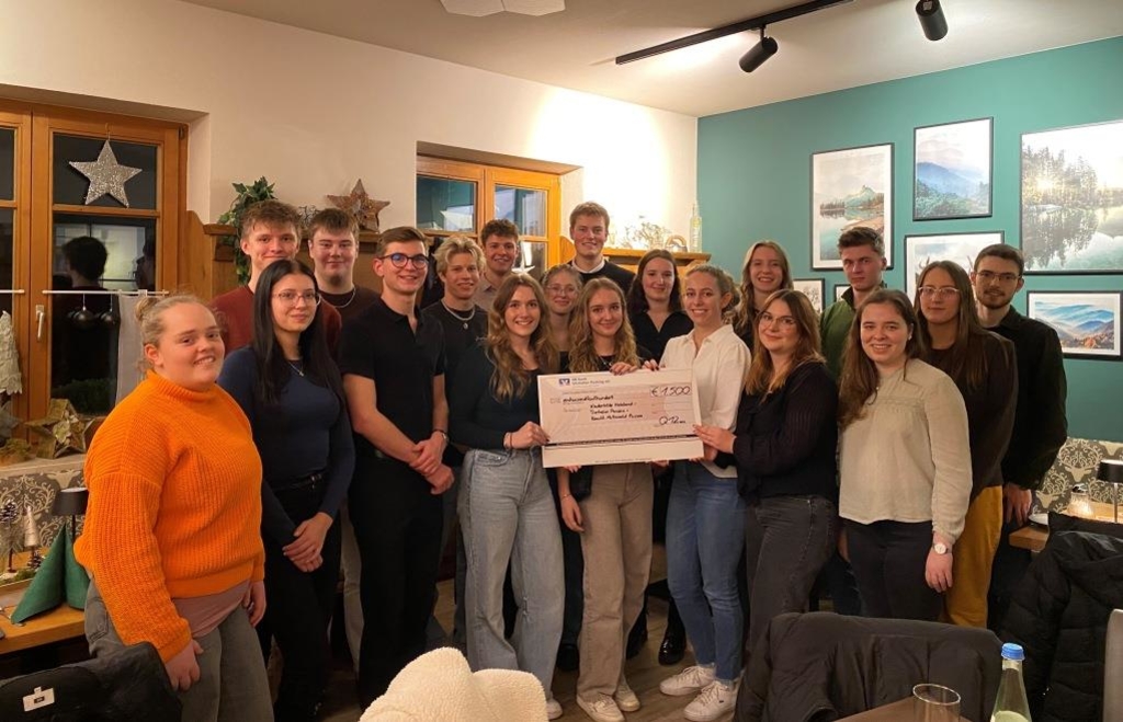 Nachdem alle Rechnungen rund um den Abi-Ball beglichen waren, trafen sich die Helferinnen und Helfer nun zu einem gemeinsamen Abschlussessen. Von den verbliebenen Mitteln wurde nun der großzügige Betrag gespendet. Das Engagement der jungen Erwachsenen wurde mit einem Gruppenfoto festgehalten, das die Schüler zeigt, die die Organisation der Events und das Sammeln von Geld maßgeblich unterstützt haben.